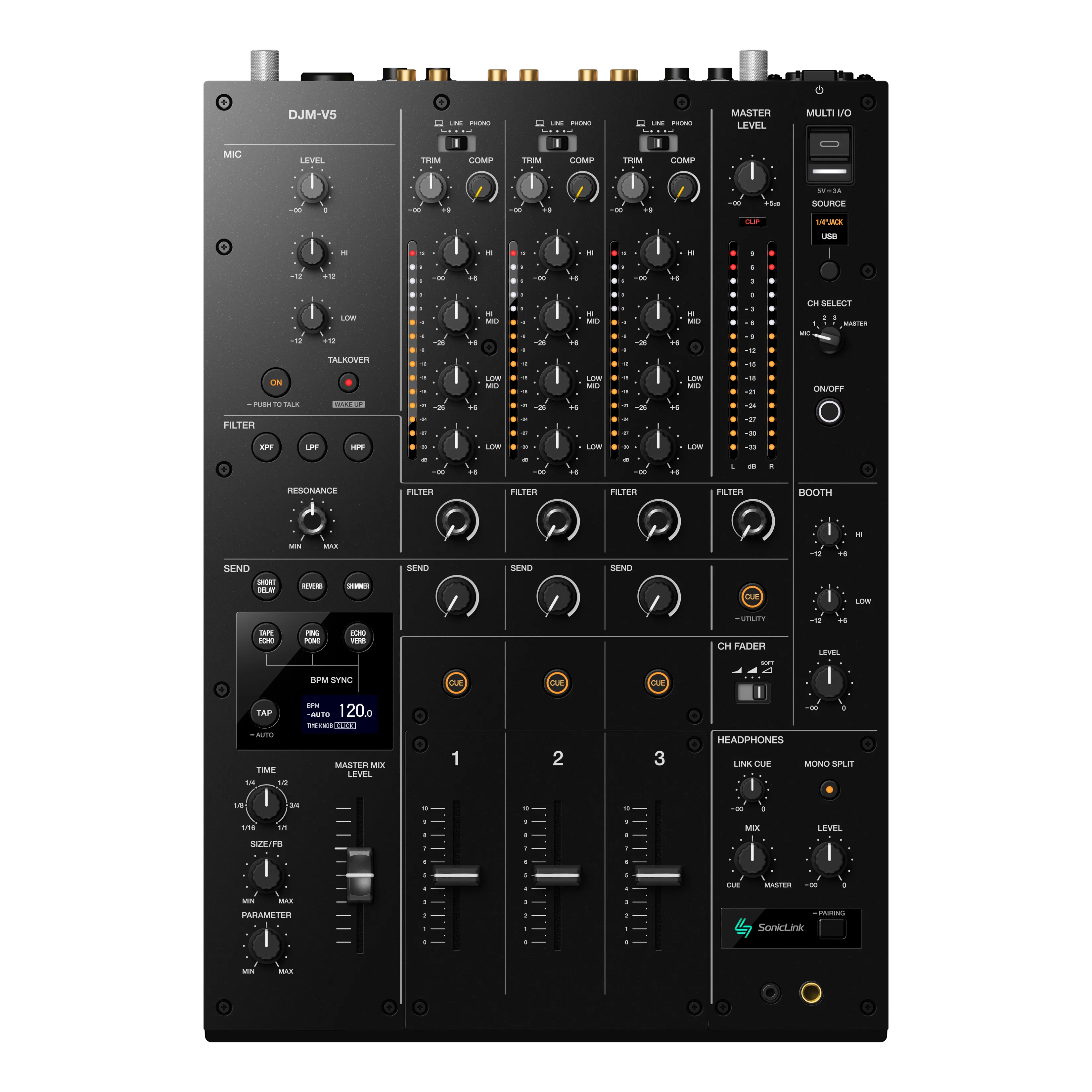 La DJM-V5 est une table de mixage DJ compacte conçue pour offrir un bon équilibre entre simplicité et performance. Elle propose généralement plusieurs voies (channels) permettant de connecter différentes sources audio (platines, contrôleurs, lecteurs), avec des égaliseurs précis et des effets intégrés pour enrichir les transitions. Son design est pensé pour une utilisation intuitive, ce qui la rend adaptée aussi bien aux débutants qu’aux DJs intermédiaires cherchant un équipement fiable pour mixer en live ou à la maison.