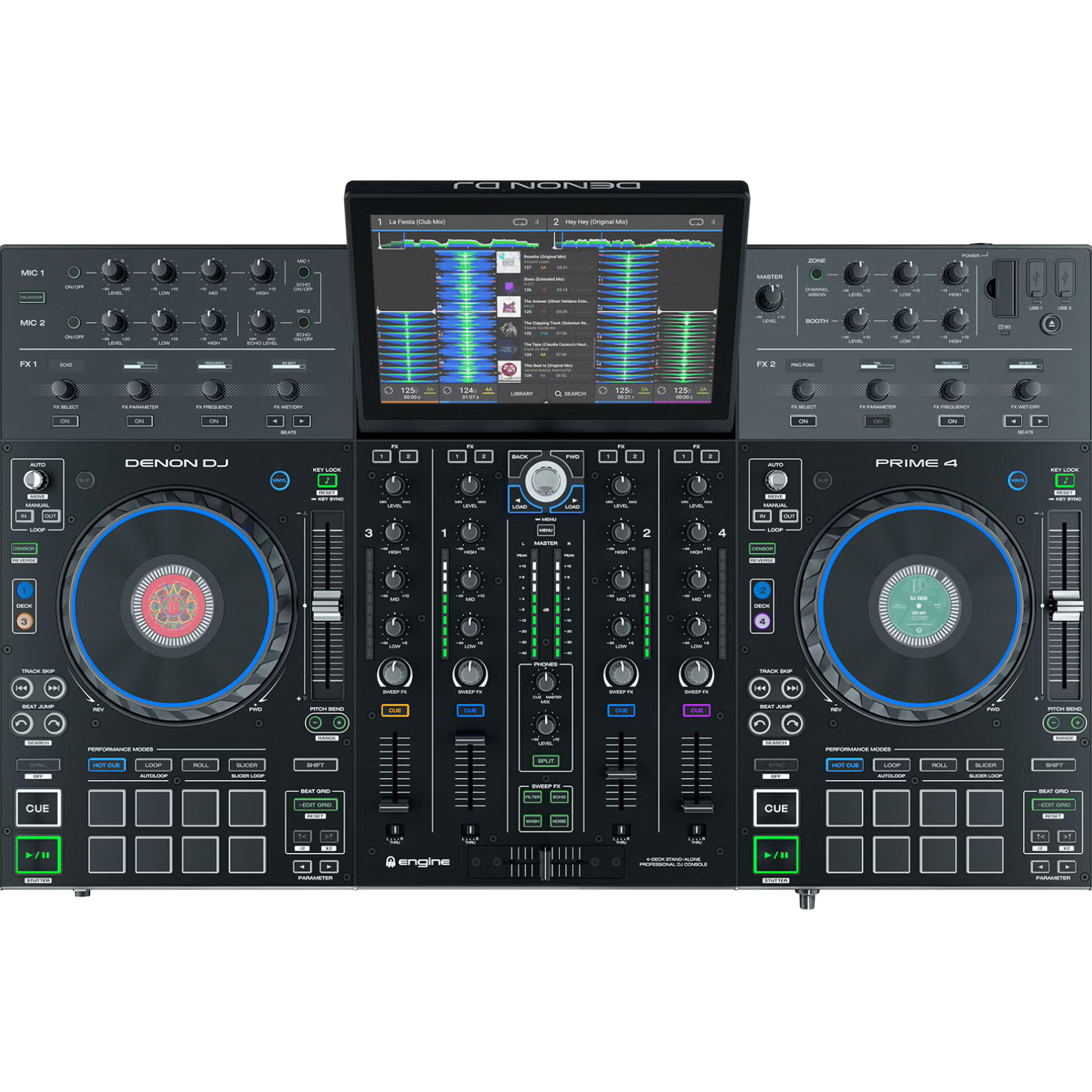 La Denon Prime 4 est un contrôleur DJ autonome haut de gamme qui permet de mixer sans ordinateur. Elle intègre 4 decks, un grand écran tactile de 10 pouces et un système complet (lecteurs, table de mixage et effets) dans une seule machine. Pensée pour le live, elle offre un accès direct à la musique via USB, disque dur ou streaming, ainsi que de nombreuses fonctions créatives (pads, effets, boucles). C’est une solution tout-en-un très puissante, appréciée pour sa liberté et sa polyvalence.