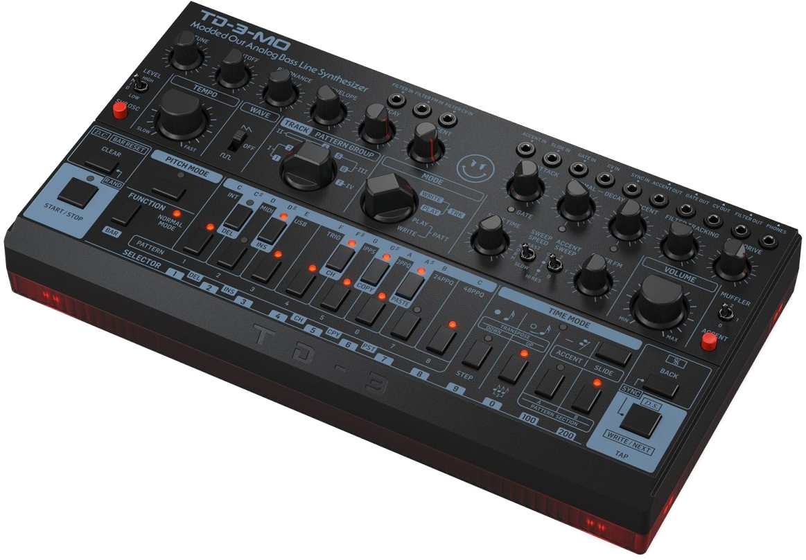 Le Behringer TD-3-MO est un synthétiseur de basse analogique inspiré du Roland TB‑303. Il dispose d’un séquenceur pas à pas, d’un filtre résonant, d’un sub‑oscillateur et de contrôles pour créer des lignes de basse groovy, avec des possibilités sonores étendues et une compatibilité MIDI/USB.