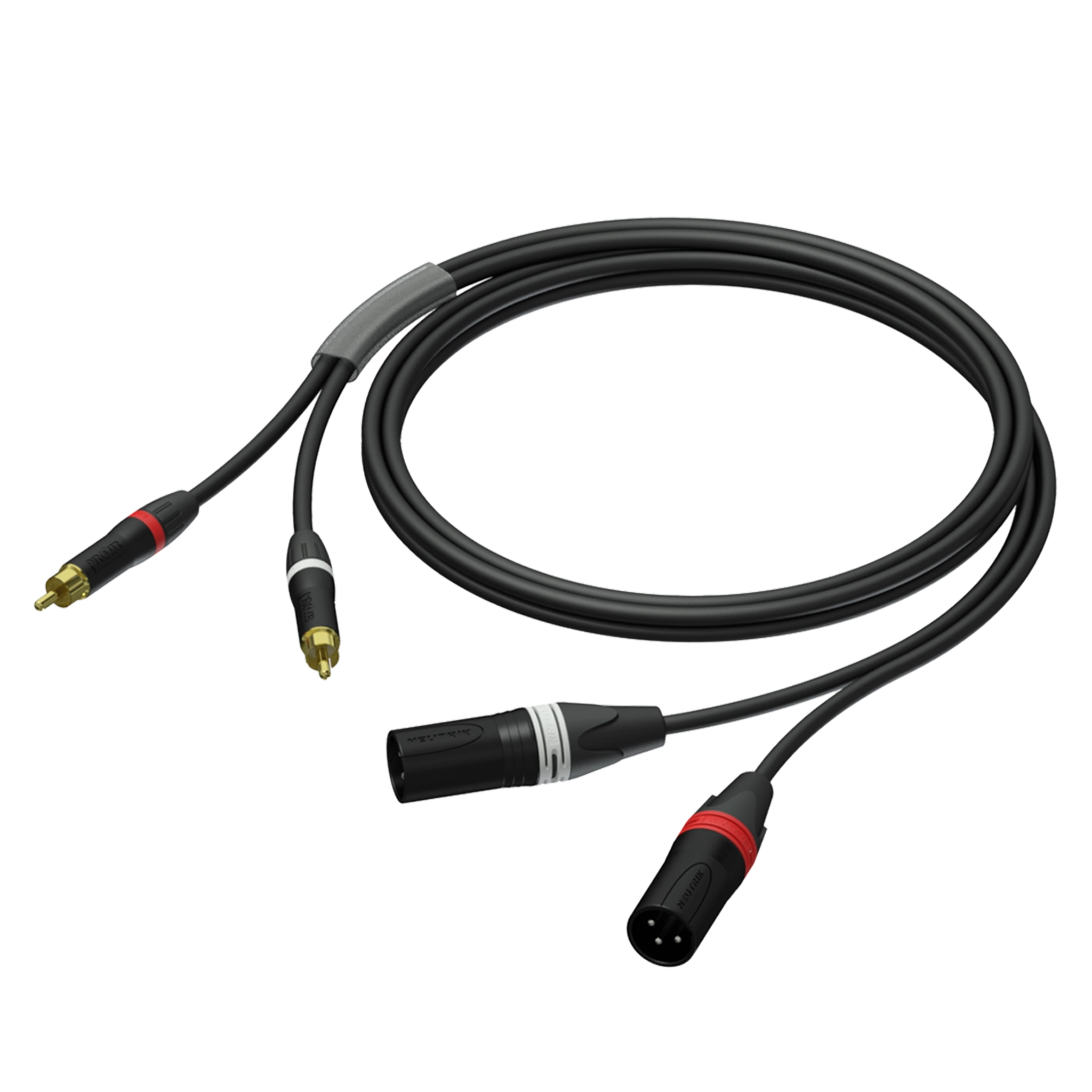 Le CFM FV est un câble symétrique destiné à la connexion de microphones à des entrées stéréo, par exemple, ou pour le câblage rapide de moniteurs de studio. Les connecteurs REAN® par NEUTRIK®, soudés à la main, sont protégés contre les dommages par un manchon de protection moulé contre les pliures. La fiche XLR femelle est nickelée, tandis que le jack stéréo 6,35 mm / 1/4" est plaqué or, offrant ainsi une protection contre la corrosion. Le câble en vrac utilisé, CME 220, possède une section de conducteur de 0,22 mm² composée de 28 brins de 0,10 mm en cuivre de haute pureté, garantissant une transmission du signal sans distorsion. Un blindage en spirale protège contre les interférences extérieures et empêche les bruits provenant des blocs d'alimentation ou des lignes électriques.